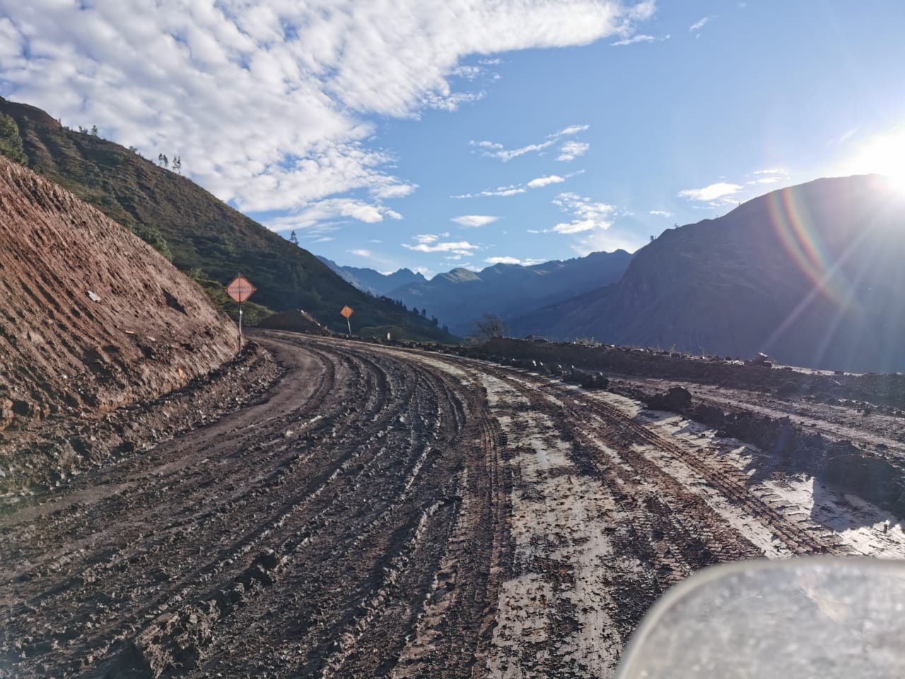 Après une belle journée de roulage sous 4% d’ensoleillement, on arrive à nouveau à une portion bloquée. Glissement de terrain, la “route” est 400 mètres plus bas.